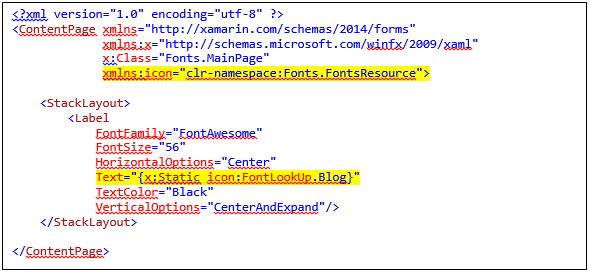 Finally, we can access these fonts and icons in our xaml file.