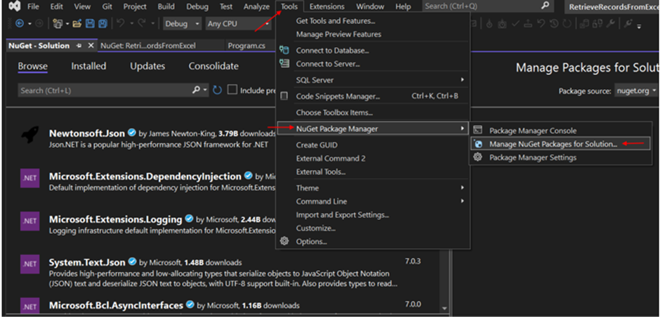 Step 4: Now, fetch records from the Excel file using this custom code in Program.cs file.