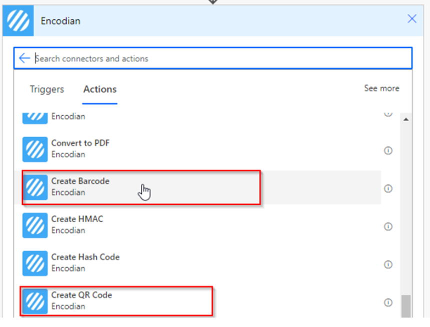 After that, Add a new action step to use connector Encodian.