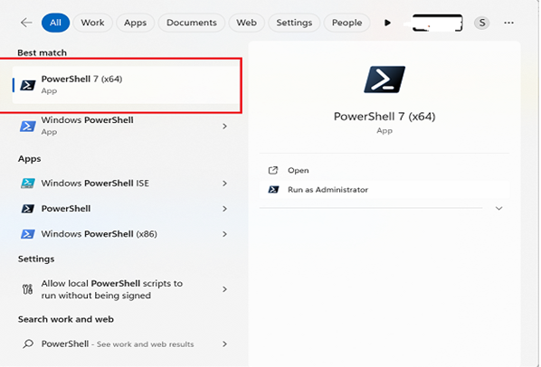 a. Search “PowerShell” and open as Administrator.