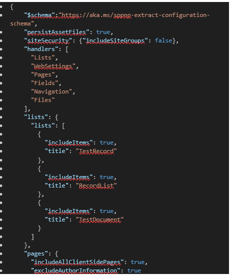 a. Create a new Config.json file in TestScriptTemplate folder to configure the site collection content, which means to configure the SharePoint list, library, and pages that the user wants to export.