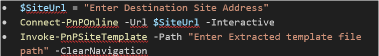2. The user can use Visual Studio code to extract the PnP site script template. By using Visual Studio code users can save export and import site script templates into PowerShell format (.ps1)
